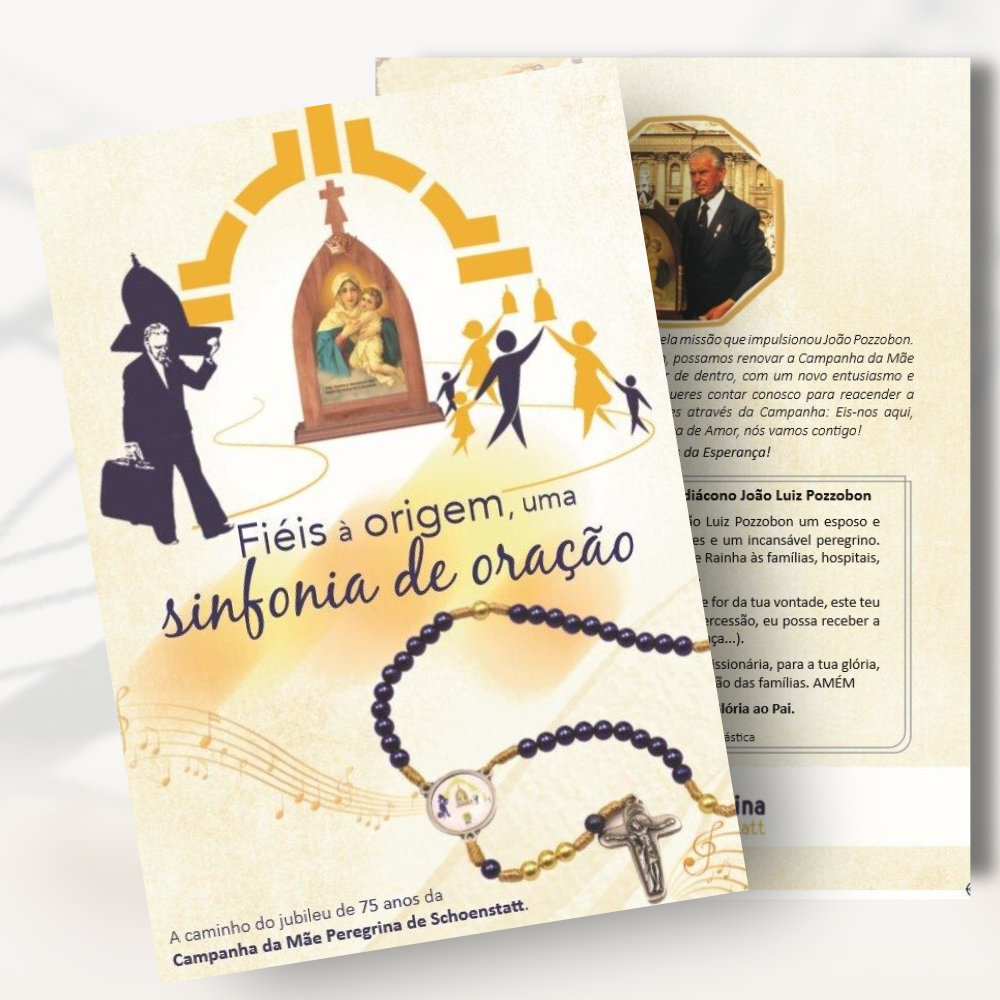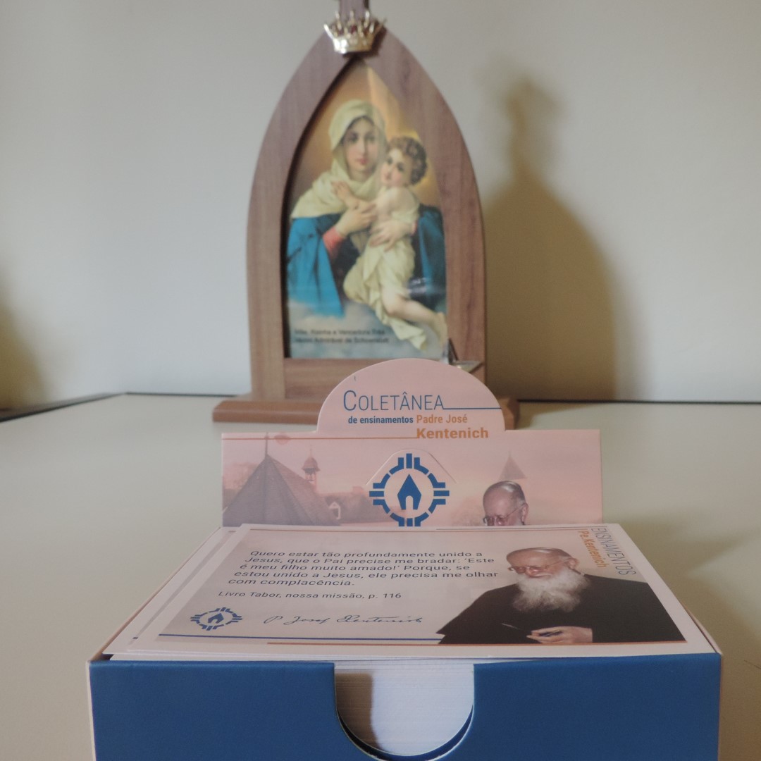 A Coletânea de Ensinamentos do Padre José Kentenich, que será usada para concretizar as contribuições ao Capital de Graças. Esta Coletânea traz mensagens do Padre José Kentenich e no verso aplicações práticas. A Coletânea também conta com a Oração pela Beatificação do Pe. José Kentenich, na parte inferior da caixa. Entre em contato e peça já para você e para suas famílias, por apenas R$5,00 cada!