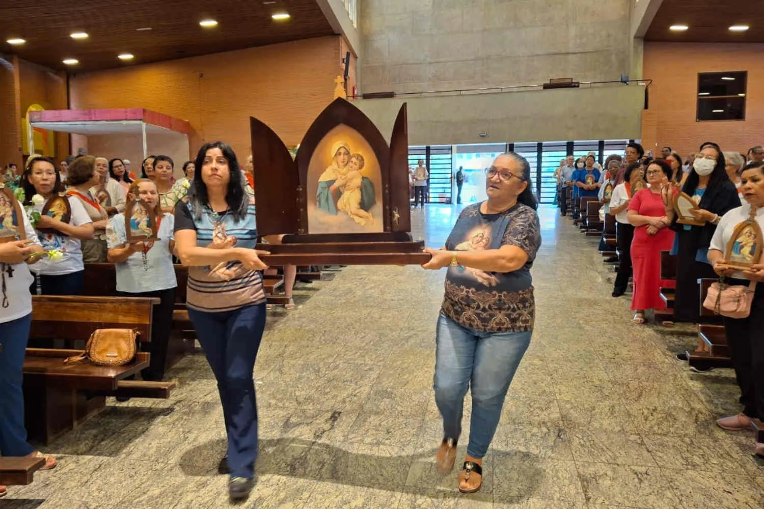No ofertório, foram levadas até o altar as flores pintadas com as cores de cada Santuário, como símbolo do Capital de Graças oferecido na preparação deste jubileu. Um ramalhete espiritual à Mãe de Deus, que há 75 anos percorre os lares para levar a esperança aos corações.